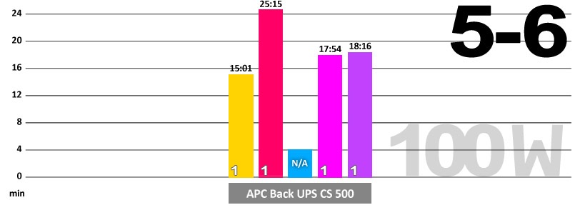 Testovi u prvoj kucici su sprovedeni na APC Back UPS CS 500 ups uredjaju pod opterecenjem od 100 W.