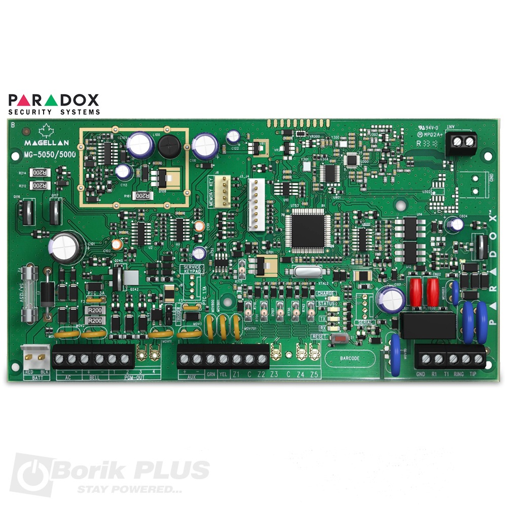 Bežična Paradox MG5000 centrala sa 32 zone. Prodaje se zasebno i kao takva ne predstavlja funkcionalnu celinu. Da bi centrala bila operativna potrebno je priključiti napajanje tj trafo od 30Va ili jači. Kompatibilni bežični senzori Paradox PMD2P  su idealna kombinacija. Odgovarajuća back up baterija služi za napajanje centrale pri nestanku struje a odgovarajuću olovnu bateriju od 7Ah pogledajte ovde. Stranicu proizvođača za ovaj proizvod možete pogledati ovde.