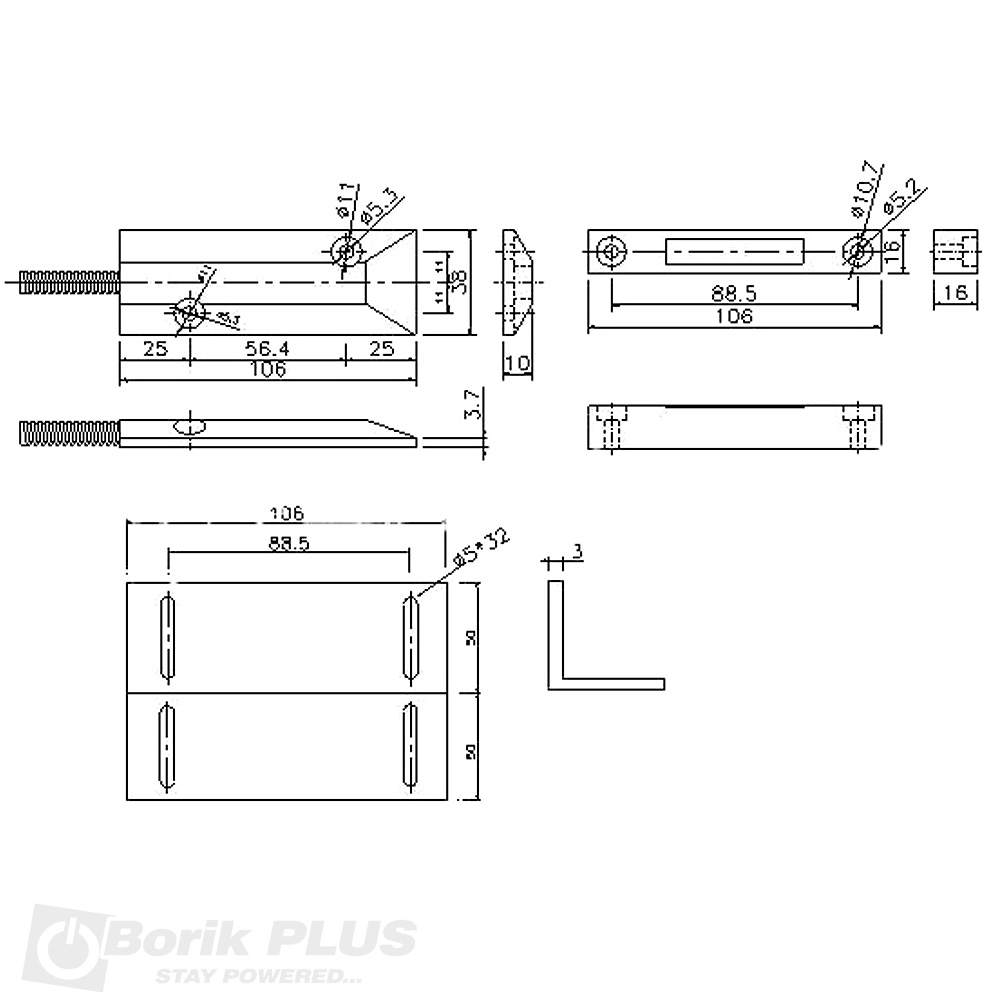 Magnetni prekidac sa nosacem za laksu montazu. Koristi se u sistemima protivprovalne zastite kao aktivator usled probijanja zone, najcesce na vratima ili prozoru nekog objekta. Zicana parica se nalazi u celicnom buziru koji se ne moze lako preseci usled provale. U kompletu se dobija magnet, kontaktni deo osetljiv na magnetno polje i nosac sa srafovima. Kada je magnet van dometa, strujno kolo u prekidackom delu je otvoreno.