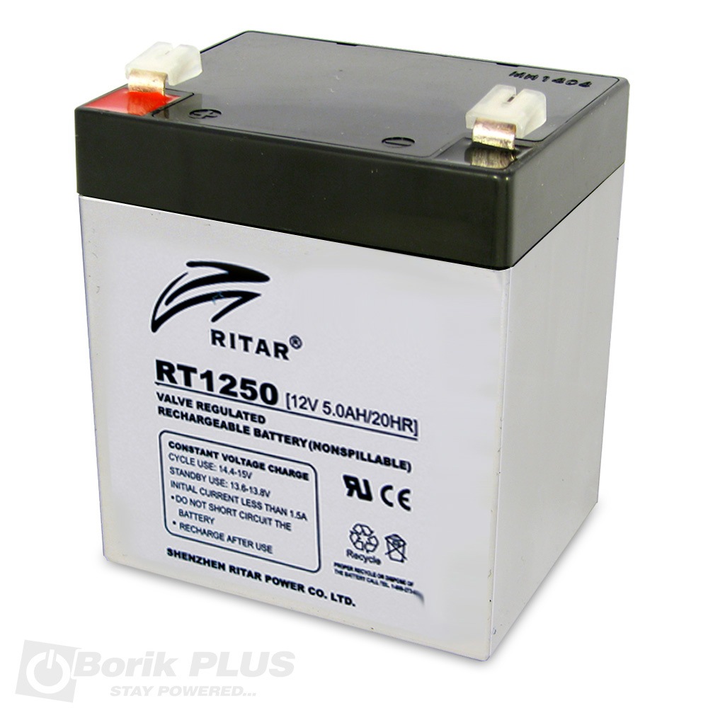 Ritar RT1250 olovna VRLA baterija sa klemom F2 (6.3 mm). Idealna za ugradnju u UPS sistemima. Baterija Ritar RT-Standby serije je odlican izbor jer za razliku od ostalih brendova ova baterija bolje podnosi nesto vece napone punjenja koji se mogu javiti kod odredjenih modela UPS uredjaja. Zivotni vek Ritar baterija zbog specijalne poboljsane legure olovnih resetaka sa sadrzajem Kalcijuma iznosi od 6 do 8 godina.