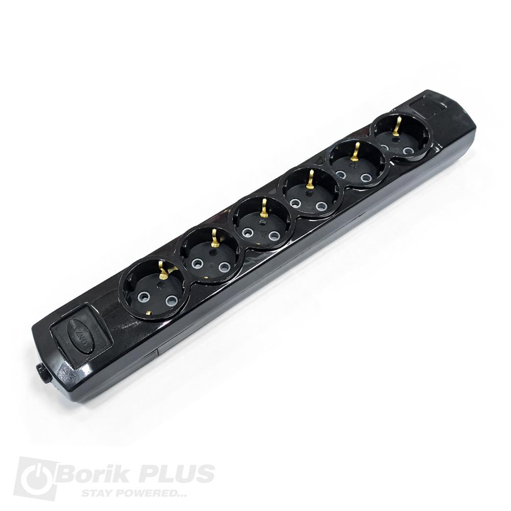 Sestostuka prenosna priključnica crne boje bez kabla. Koristi se kao razdelnik za napajanje sest potrosaca sa šuko uticnicama. Za struju do 16A, i maksimalnog napona do 250V. Maksimalno snaga svih potrosaca prikacenih na produzni kabl ne sme biti veca od 3500W. Bez provodnika. Preporuceni provodnik (kabl) H05VV-F 3G1,5 (PP/J-Y 3×1,5). Bez prekidača. Za ovaj model utičnice možemo ponuditi i odgovarajući zidni nosač koji možete pogledati ovde.