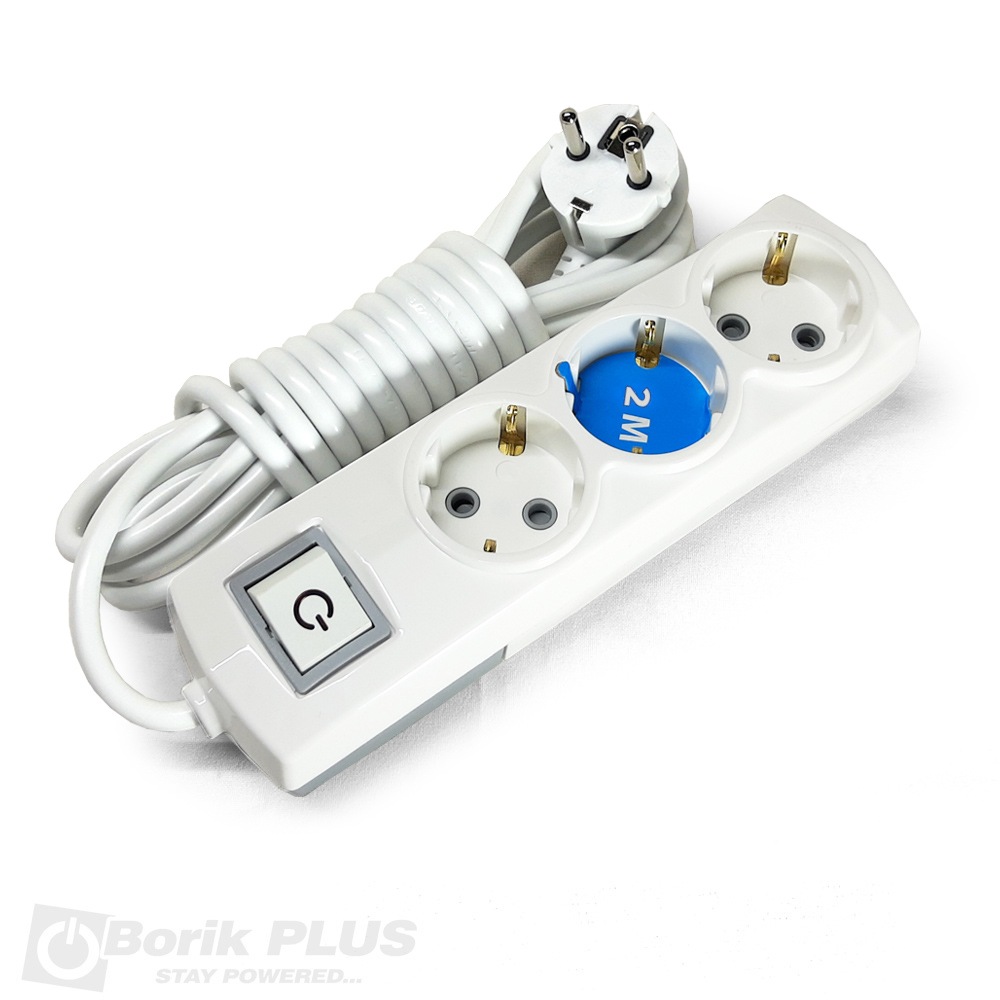 Trostruka prenosna priključnica bele boje sa 2 metra kabla, i prekidačem. Koristi se kao razdelnik za napajanje tri potrošača sa šuko utičnicama. Za struju do 14A, i maksimalnog napona do 250V. Maksimalno opterećenje produžnog kabla sve ukupno ne bi trebalo biti veće od 3000W. Za ovaj model utičnice možemo ponuditi i odgovarajući zidni nosač koji možete pogledati ovde.