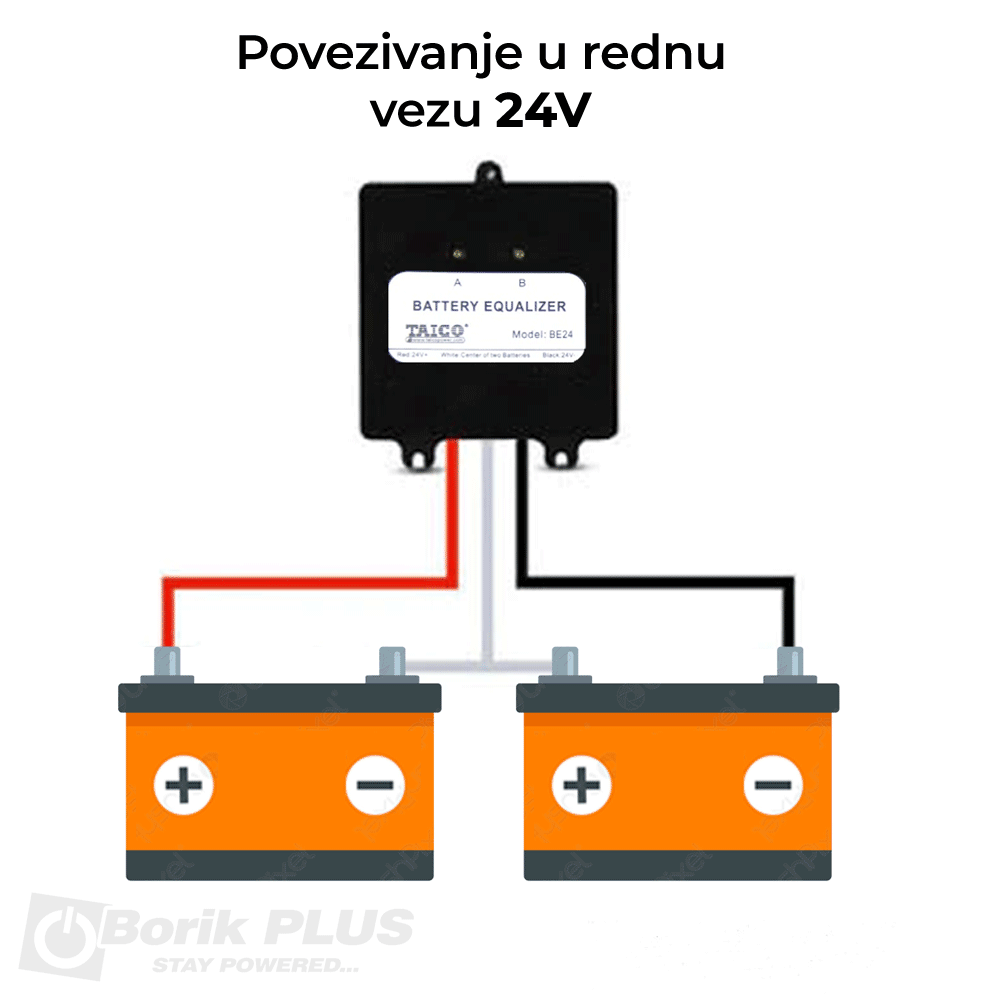 Svaki sistem gde su baterije povezane redno, bi trebao da ima iste uslove punjenja. U suprotnom, velike razlike će uzrokovati oštećenje baterije usled prekomernog isparavanja gasova i sulfatizacije olovnih rešetaka. Balanser baterije izjednačava stanje napunjenosti povezanih baterija da bi se izbeglo oštećenje. Samim tim produžuje životni vek baterije. Baterijski ekvilajzer poboljšava performanse i produžava vek redno punjenih baterija do 30%. Sa dva balansera moguće je izjednačavanje napona u sistemu 36V a sa tri balansera u sistemu od 48V. Balanser služi isključivo za nove baterije i isti ne revitalizuje stare baterije, već isključivo čuva nove i produžava im vek trajanja.