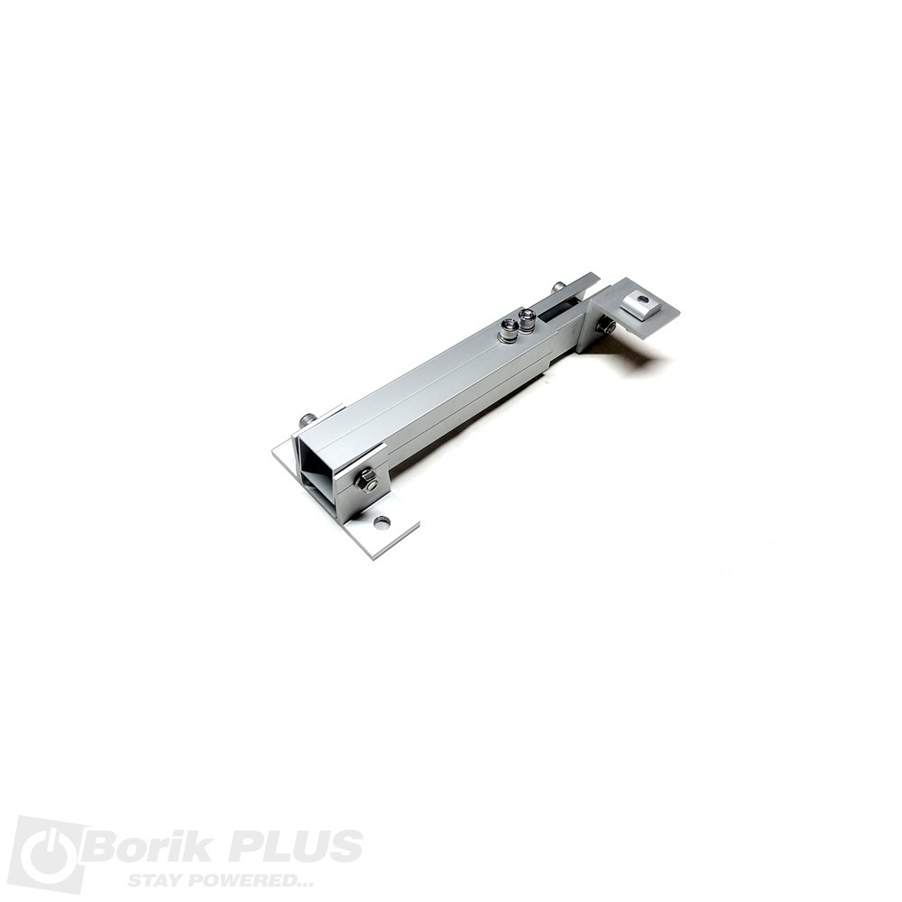 Nosač solarnog panela-rotirajući gornji 10/15, za konstrukciju solarnog panela-gornji za nagibe od 10 do 15 stepeni u odnosu na horizontalu. Specijalno napravljen rotirajuci (zglobni) i teleskopski drzac koji se montira na gornju sinu. Napravljen od anodiziranog aluminijuma cija teleskopska sipka moze da se izvlaci i pravi nagib od 10 do 15 stepeni u odnosu na donji nosac Poseduje na sebi klin koji jednostavnim umetanjem u kanal sine obezbedjje cvrstu vezu. Za zatezanje poseduje imbus sraf od pocinkovanog celika. Montaza nastavka je izuzetno jednostavna i laka, i zahteva imbus 6 kljuc za pravilnu montazu. Detaljna uputstva za montazu kao i spisak elemenata mozete naci u katalogu ispod tabele.