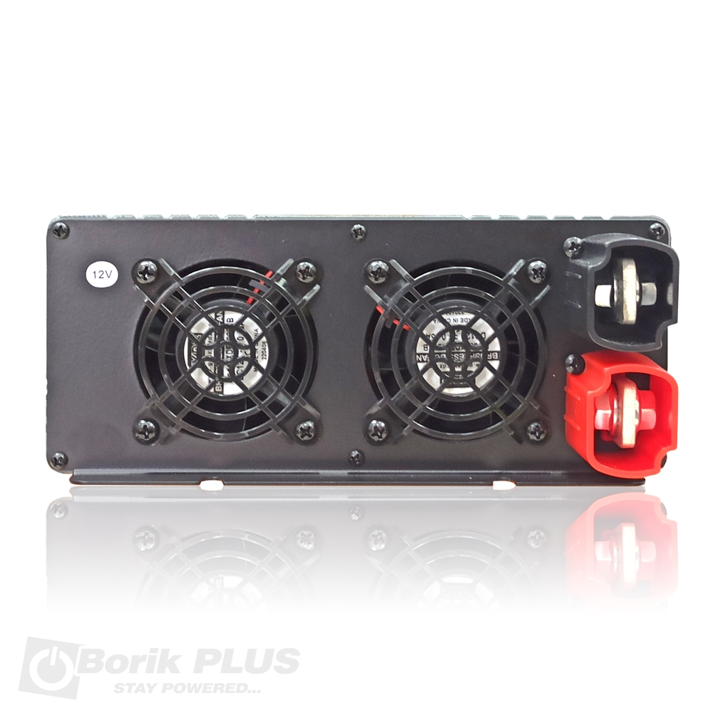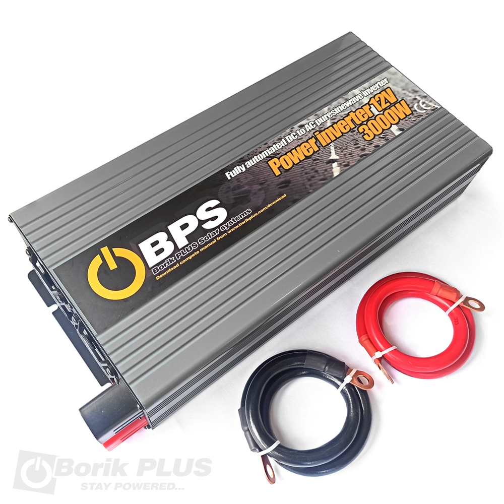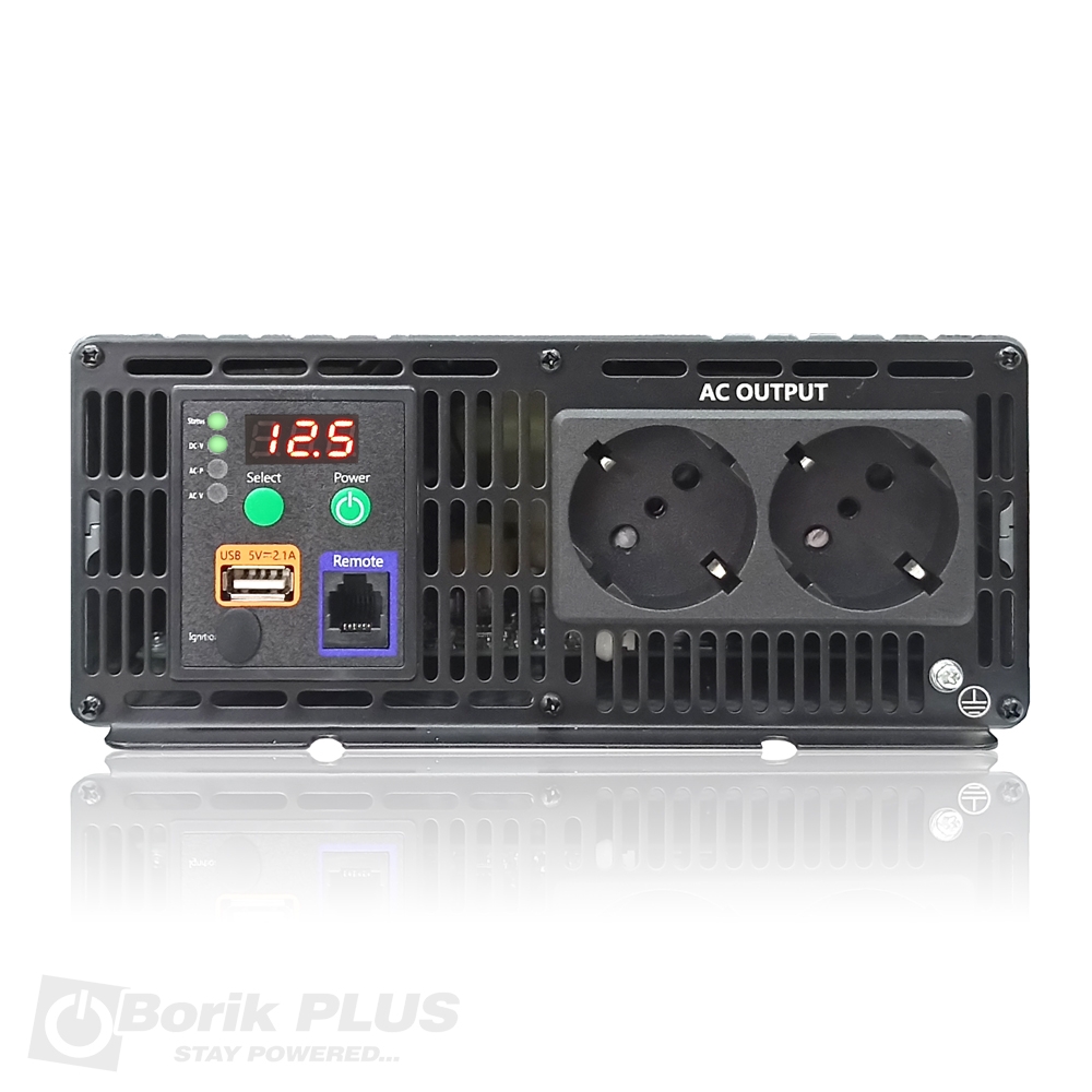 Čist sinusni inverter sa 12V na 230V, snage 3000W (6000W u piku). Potpuno novi dizajn sa poboljšanim karakteristima, većim iskorišćenjem i boljom konverzijom. Ovaj novi dizajn poseduje i mali ekran koji prikazuje neke od osnovnih parametara sistema kao i kodove grešaka. Idealan za upotrebu u manjim solarnim sistemima ili kamperima. Sinusni oblik mu omogućava da bez ikakvih problema napaja bilo kakav uređaj. Na sebi poseduje izlaz od 5V (USB) za napajanje mobilnog telefona ili tableta koje je moguće opteretiti do maksimalno 2.1A. Ovaj model invertera poseduje i IGNITION priključak za povezivanje sa motornim vozilom. Povezivanje ovog kontakta sa vozilom omogućava da pri startovanju motora se automatski startuje i inverter a pri gašenju motora gasi se i inverter. Za hlađenje poseduje dva snažna ventilatora koji obezbedjuju odličan protok vazduha unutar uređaja. Ako Vam je potreban sinusni inverter iste snage ali koji vrši konverziju sa 24V na 230V, klinkite ovde. Ako Vam je potrebno da ovaj inverter uključujete i isključujete, žično, sa daljine do 10 metara, pogledajte remote switch ovde.