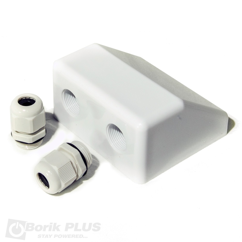 Uvodnik kablova za solarni panel bele boje. Montaža na krov kaperske kućice ili prikolice se vrši lepljenjem silikonom ili drugim lepilima. Nosač solarnog panela napravljen je od kvalitetne ABS plastike otporne na UV zrake. Najčešća primena ovog uvodnika kablova solarnog panela je kod montaže na krov kamperske prikolice, kombi vozila, čamaca, brodova i ostalih površina gde je potrebno postici aerodinamicnost i lep vizuelni izgled kao i zaustaviti prodor vode unutar vozila.