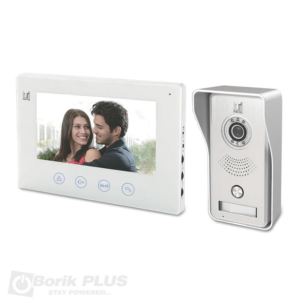 Teh-Tel video interfonski komplet za jednog korisnika. Model Top 7. Ovaj set sadrži sve elemente i delove za samostalni interfonski komplet i montažu. Ovaj interfonski komplet ima jedinstven i elegantan dizajn. Neke od opcija su: Služi za poziv, dvosmernu komunikaciju, video nadzor kao i otvaranje električne brave ili magneta. Kamera CCD u boji rezolucija 700 TV Linija. Omogućava razgovor bez slušalice, odnosno “slobodnih ruku”. Pakovanje sadrži uputstvo za instalaciju, kao i šemu povezivanja, tako da je montaža prilagođena ugradnji po sistemu “uradi sam”.Promenljive melodije za poziv. Komplet sadrži i 15 m kabla. Kamera poseduje i rad u noćnim uslovima. Ima ugrađen čitač tagova u sebi.