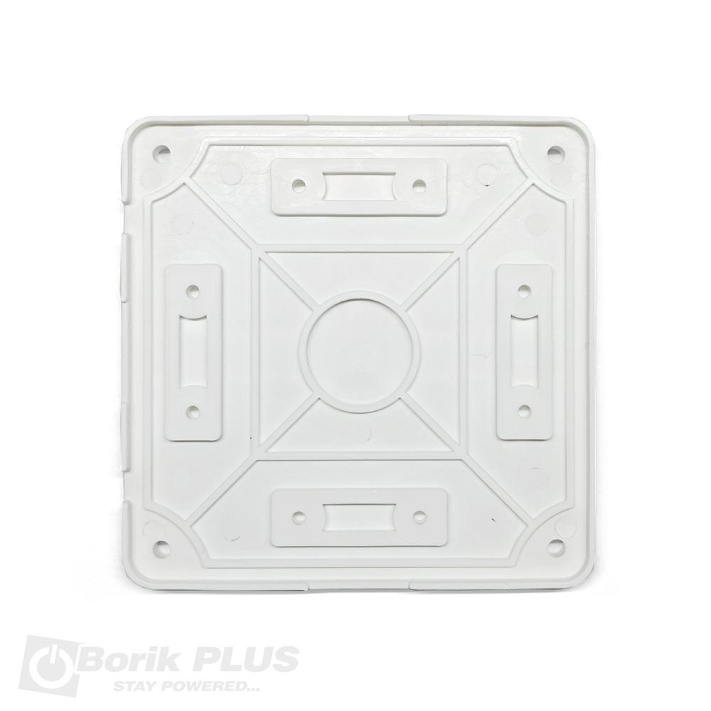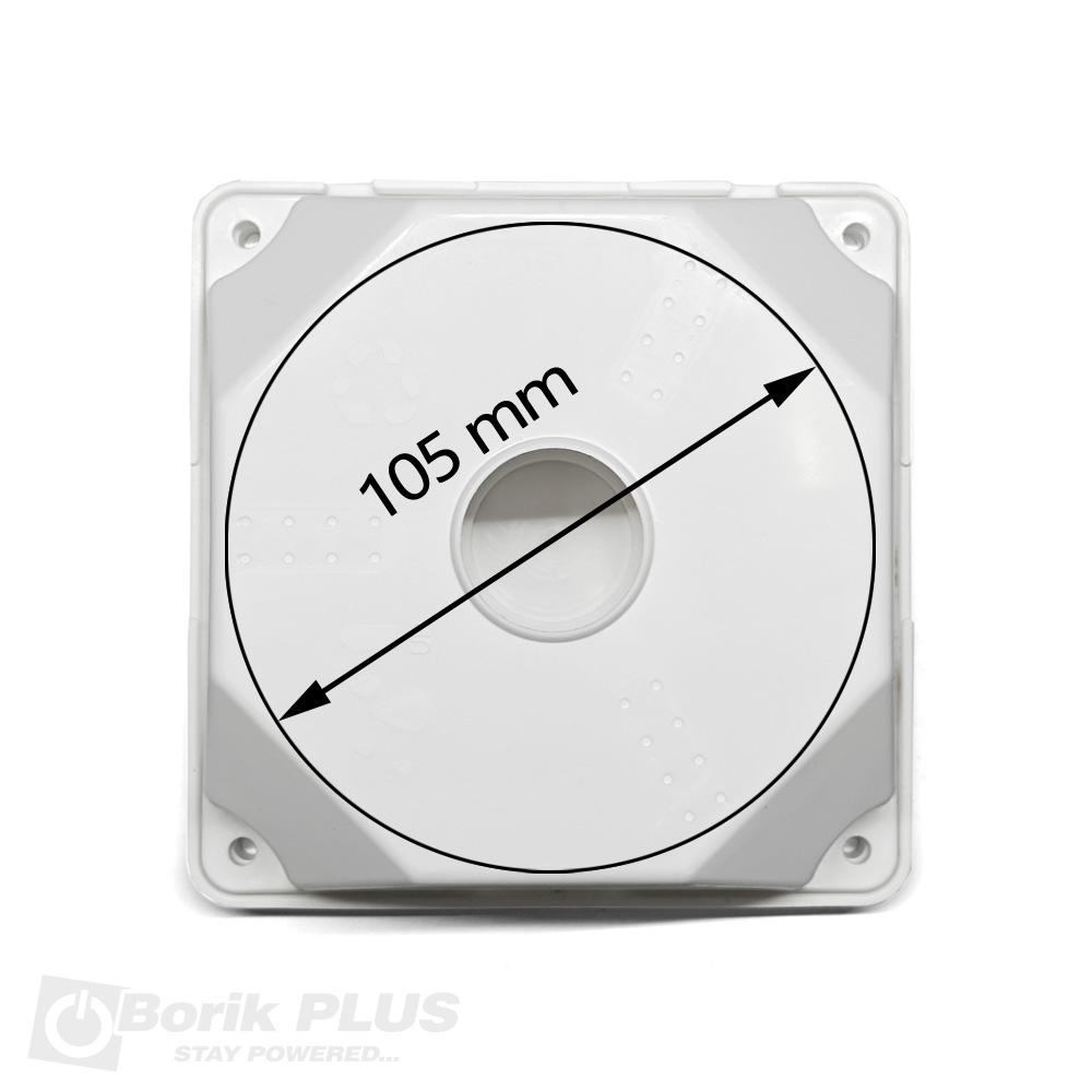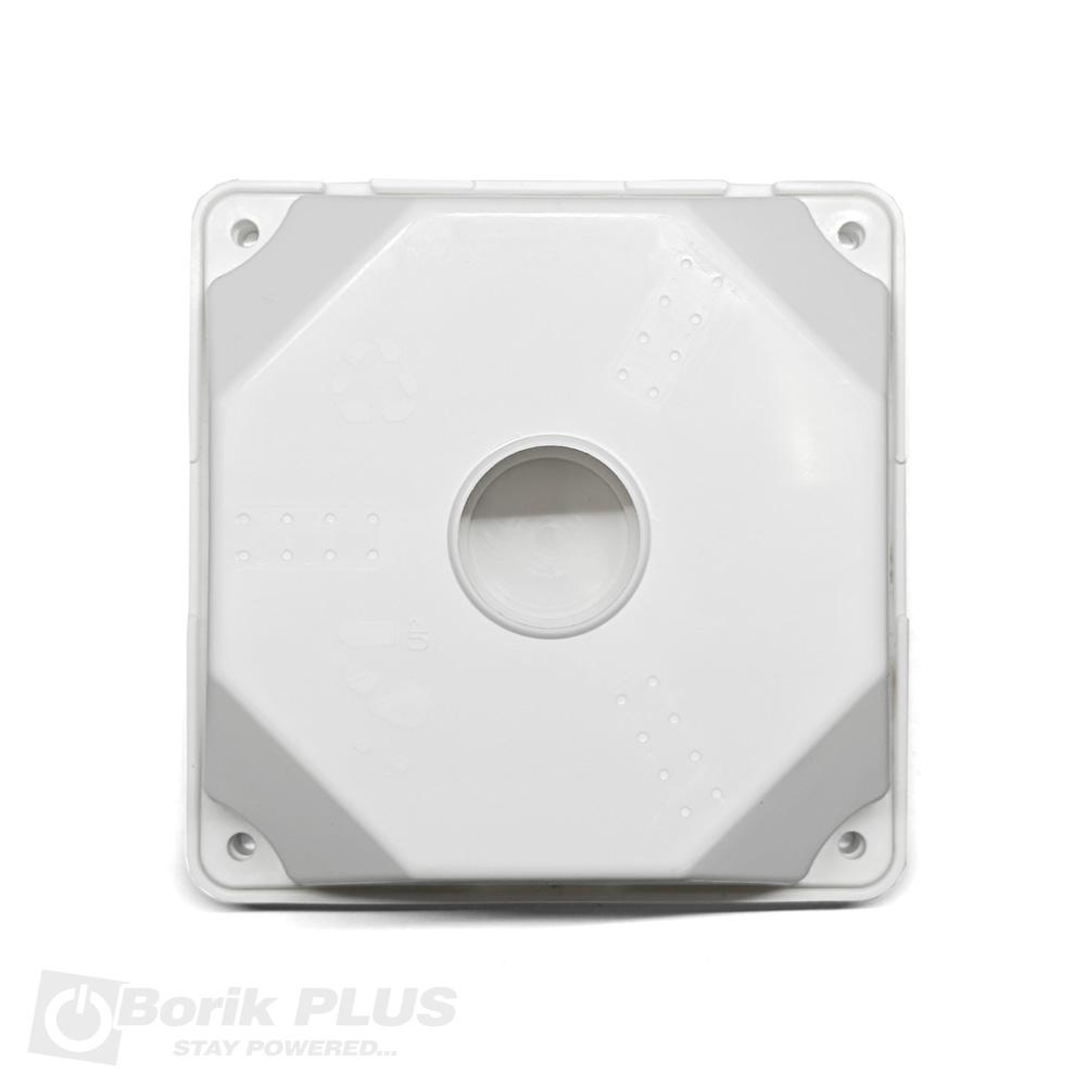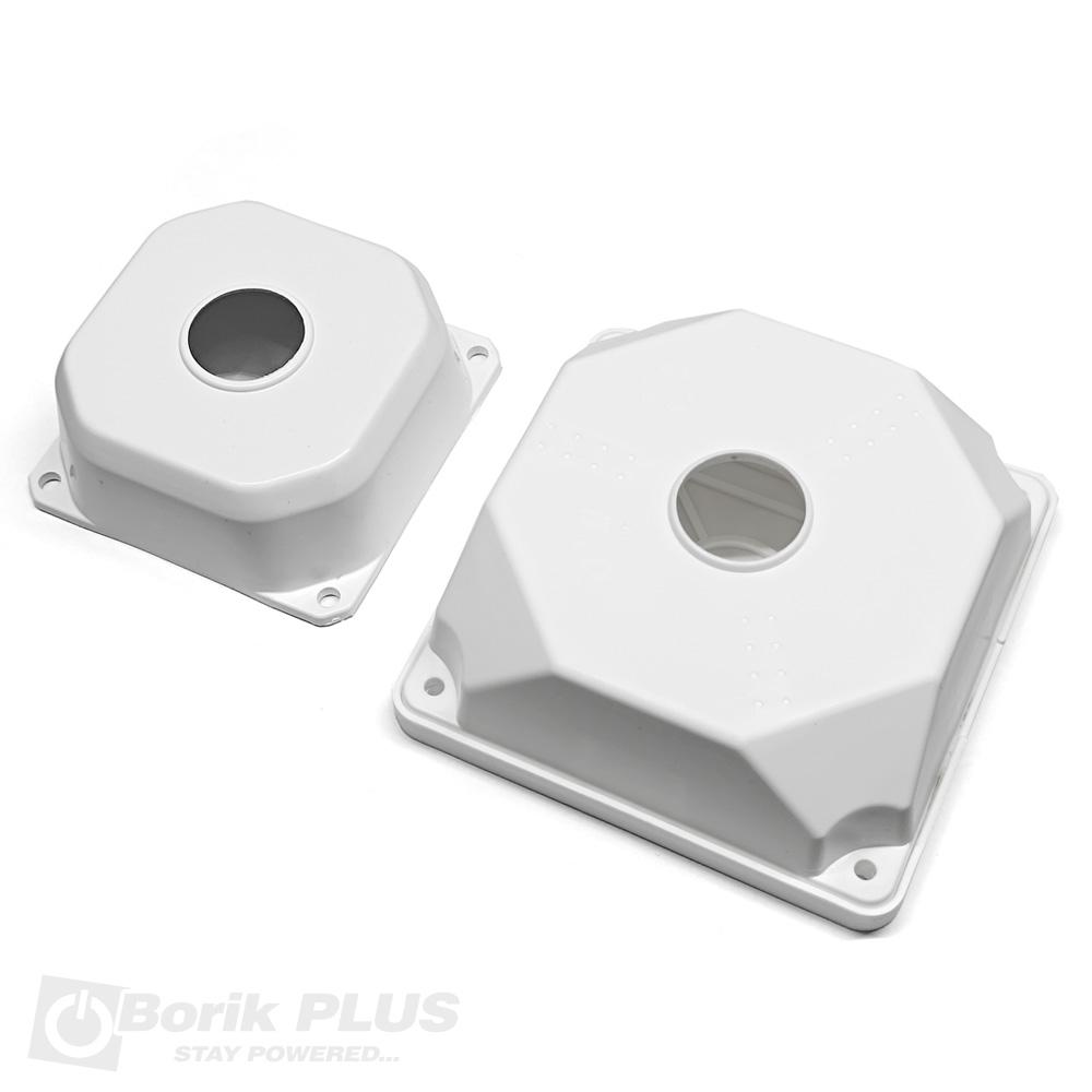 Univerzalni nosač za kameru-VEĆI. Ovaj model nosača služi kao distancer za kameru u odnosu na površinu na kojoj se kamera montira. Na ovaj nosač se može montirati i DOME i BULLET kamera bilo kog proizvođača i bilo kog raspona rupa. Kablove ili video balune možete sakriti u kućištu. Kućište nije vodootporno pa je preporuka da se kamera i nosač montiraju na mestu gde nema zapljuskivanja vodom. Na ovaj model univerzalnog nosača može se montirati bilo koja kamera čija baza ne prelazi prečnik od 105mm. Dimenzije i prečnik kamere koju želite da montirate imate na dnu svakog tehničkog lista. Nosač se za fasadu ili zid pričvršćuje sa 4 šrafa koji se ne dobijaju uz nosač.